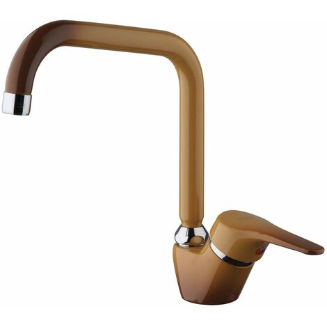 Miscelatore monocomando color terra di francia con canna girevole per lavello cucina. Rubinetteria da cucina miscelatore lavello bocca diagonale sole cartuccia ceramica 35 mm terra di francia. Miscelatore monocomando lavello terra di francia per lavello con canna alta fusa snodata da cucina. Miscelatore lavello da cucina s.